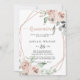 Cette invitation à la Quinceañera, une rose rose rose pâle et géométrique est parfaite pour une fête rustique de 15 ans. Le design présente d'élégants roses poussiéreux aquarelle et feuillage vert, soigneusement assemblés en de beaux bouquets, décorant un cadre géométrique charmant.