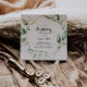 Cette invitation de fête d'anniversaire géométrique et élégante de verdure dorée est parfaite pour un anniversaire moderne. Le design est orné de feuilles d'eucalyptus verts peints à la main et ornés d'un cadre géométrique doré.