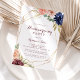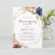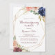 Cette invitation à la fête de l'or rustique géométrique est parfaite pour une simple fête de famille et d'amis nouvel endroit. Le design se compose de l'aquarelle dessinée à la main violet, marine, rousse, bordeaux, fleurs marines, feuilles verts et or, ornant un cadre géométrique élégant.
