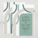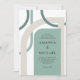 Une touche moderne d'un style art déco glamour d'antan, cette invitation de mariage colorée présente des formes géométriques courbes entrelacées autour de la mise en page du texte de l'invitation. Les couleurs comprennent la palette de couleurs populaire du vert lichen et du beige ivoire neutre encadrant votre texte. Les résultats sont uniques et artistiques avec un attrait rétro. Cette palette de couleurs est un choix merveilleux pour les mariages côtiers, plage ou de destination.