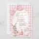 Invitation Gingham Coquette Pink Floral Bunny Third Birthday