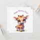 Une girafe bébé mignonne de style dessin animé avec de grands yeux expressifs et un sourire joyeux. Elle se tient dans une pose ludique, l'ambiance générale est gaie et fantaisiste, parfaite pour des cadeaux pour enfants.