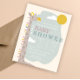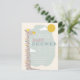Une invitation baby shower moderne illustrant une girafe au ciel bleu, au soleil et aux nuages. Invitation dispose d'un design et d'une palette de couleurs neutres modernes. Personnalisez le texte.