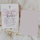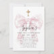 Invitation Girl's First Communion Pink Toile Bow Cross