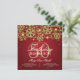 Parties scintillant Gold Red Winter Glam 50th Birthday Invitation. Un élégant modèle d'invitation à la fête du 50e anniversaire, avec des flocons de neige en parties scintillant et des lampes de bougie brillantes sur le arrière - plan rouge (vous pouvez changer la couleur arrière - plan pour répondre à vos besoins), et le nom personnalisé + texte de détails. Idéal pour les fêtes d'hiver et de Noël.