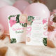 Cette invitation branchée à la Bachelorette propose un regroupement amusant d'accessoires de temps d'été rose accentué par les feuilles de monstère tropicale Tous les détails de peuvent être édités pour répondre aux besoins de votre événement. L'arrière présente tous les détails du week-end et est encadré d'accessoires de piscine rose.