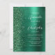 Le bord gauche de cette élégante faire-part de mariage moderne est orné d'une bordure en faux parties scintillant vert émeraude. Le texte personnalisable combine écriture blanche, copperplate et polices italiques sur un arrière - plan en métal brossé vert émeraude. L'envers offre de l'espace pour les détails mariages sur un arrière - plan en métal brossé vert émeraude, ainsi qu'un code QR que les clients peuvent scanner pour visiter votre site Web et RSVP, ce qui permet d'économiser le coût d'impression et d'envoi de cartes RSVP séparées.