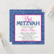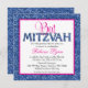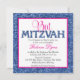 Une invitation à la fête Bat mitzvah moderne. Doté d'une fausse parties scintillant bleu marine aux accents de rose chaud. Les dessins sont des graphiques imprimés à plat - PAS de PARTIES SCINTILLANT RÉELLE.