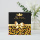 Invitation d'anniversaire de Quinceañera, glamour, avec une impression de jaguar sauvage brun et noir au fond de l'invitation. La zone de texte en noir, en haut de l'invitation a un texte jaune doré prêt à être personnalisé. Cette élégante invitation est agrémentée de graphismes de rubans dorés satinés, arc et couronne. Grande invitation que votre fille d'anniversaire spécial va aimer.