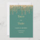 Une glam mauve parties scintillant verte et or goutte luxe Mariage Enregistrer la Date invitation est parfait pour toute fille classe et sophistiquée. Ce design géométrique de parties scintillant dorée exquis et éblouissant est parfait pour l'événement tendance et élégant girly party. Customisez cette conception avec votre message et des informations personnalisées.