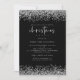 Glam Silver Faux Parties scintillant Noël fête Noir. Disponible numériquement et imprimé. Une bordure de parties scintillant est sur chaque côté, haut et bas, et Noël est dans un script de style manuscrit en minuscules. Personnalisez facilement le reste du texte à vos propres détails. Vous pouvez également modifier le texte et les couleurs arrière - plans via l'option customiser plus si vous le souhaitez.