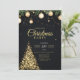 Create magical holiday memories with this show-stopping invitation showcasing a shimmering gold particle Christmas tree with elegant ornaments suspended above. The dark sophisticated background highlights the luxurious gold elements, perfect for upscale holiday celebrations, corporate galas, or elegant family gatherings seeking a contemporary festive aesthetic.
