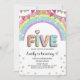 Invitation Glitter FIVE Girly Rainbow Sequin 5th Birthday