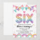 Invitation Glitter SIX Girly Rainbow Sequin 6th Birthday