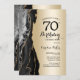 Gate noir et or 70e anniversaire invitation de fête. Design élégant et moderne avec arrière - plan de géométrie en marbre de pierre de pierre, or de parties scintillant faux et police de script de typographie. Carte invitation branchée parfaite pour une célébration anniversaire féminine élégante. Invitations Zazzle imprimées ou téléchargement instantané modèle imprimable numérique.