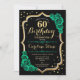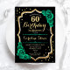 Invitation de fête du 60e anniversaire. Design vert émeraude floral élégant avec de l'or de parties scintillant, des roses et des caractères de script. Idéal pour une célébration anniversaire féminine élégante. Peut être customisé pour n'importe quel âge ! Invitations Zazzle imprimées ou téléchargement instantané modèle imprimable numérique.