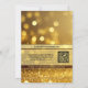 Happily ever after wedding invitation featuring sunflowers, autumn leaves and gold floral swirls on a chic black and sparkling gold striped background. On the back is a QR code template which you can easily customize or delete if you do not need it.