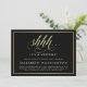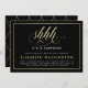 Gold & Black Surprise Anniversaire de fête Invitation par Eugene Designs. Envoyez ces invitations minimalistes en noir et or et commencez votre fête surprise dans le style! Sur le devant, dans un script stylisé à la main est le texte "shhh..." en fausse feuille d'or. Au contraire, il y a un motif de feuille d'or faux sur arrière - plan noir.