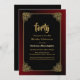Invitation Black 40e anniversaire avec un cadre doré orné avec une bordure extérieure à l'ombre rouge pour compléter le design créant une invitation vibrante pour votre occasion spéciale.