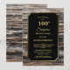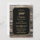 Une rustique or bordé de bois surprise 100e anniversaire dîner invitation avec texte or sur un arrière - plan noir.