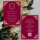 Invitation Gold Crest Monogram QR Code Magenta Wedding