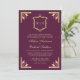 Invitation Gold Crest Monogram QR Code Plum Purple Wedding