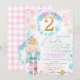Gold Two Land of Sweets Nutcracker Birthday Invitation Sweet Nutcracker terre de bonbons invitation d'anniversaire mettant en vedette un casse-noix du ballet Nutcracker, un grand faux feuille d'or numéro 2, un texte décoratif en faux or, des bonbons, des bonbons ou des lollies, une couronne d'hiver et des flocons de neige. Cette terre de sucreries invitation de deuxième anniversaire est une façon mignonne de mettre la scène pour un Casse-Noisette, pays de douceurs fête de deuxième anniversaire de fille.