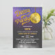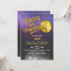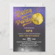© Socialite Designs Inc. & LICENSORS. Célébrez une fête d'anniversaire disco en invitant les invités avec cette invitation amusante et rétro de fête d'anniversaire disco. Les couleurs sont or, blanc, rose, violet et gris. Le design incorpore une boule disco or et des lumières à cordes violet / rose comme arrière - plan.