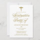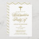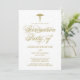 Invitation à la remise des diplômes de l'école de médecine en or et blanc avec un script élégant, caduceus avec un motif chevron. Cette invitation est disponible en d'autres couleurs.
