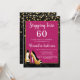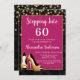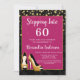 60 Hot Pink et Gold Foil Confetti et Chaussures 60e anniversaire Invitation de fête. Cette invitation à fêter l'anniversaire d'une femme moderne et élégante est parfaite pour une fête de 60 ans. L'invitation comprend des chaussures en or, des confettis en feuille d'or, des arrière - plans damassés noirs et de la typographie en écriture blanche. Veuillez contacter le concepteur pour customiser les articles correspondants.