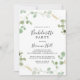 Cette invitation à la bachelorette dorée à feuilles d'eucalyptus est parfaite pour un événement moderne. Le design comprend un feuillage vert d'eucalyptus aquarelle avec des confettis d'or.