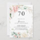 Cette invitation à la fête de 70e anniversaire de feuillage vert or est parfaite pour une simple fête d'anniversaire. Le design se compose d'or dessiné à la main et de feuillage botanique vert avec des fleurs roses, rousses et blanches, inspirant la beauté naturelle.