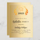 Un arrière - plan à l'allure d'or. Une couronne de laurier classique et une casquette de graduation. Personnalisez et ajoutez l'année, le nom et les détails. Texte noir.