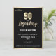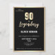 Moderne Gold Metallic Surprise 90ème anniversaire Invitation. Fêtez un jalon dans le style avec notre Elégant invitation Black & Gold 90th Birthday. Doté d'un arrière - plan noir sophistiqué orné d'un faux papier doré luxueux, ce design ajoute une touche de classe à toute célébration. Cette invitation est parfaite pour que l'invité d'honneur se sente spécial. Rendez le tournage 90 inoubliable avec ce design intemporel et chic !