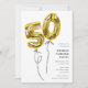 Invitations amis et famille à une fête de 50ème anniversaire avec ce design minimaliste. Doté d'hélium d'or numéro 50 ballons sur un arrière - plan blanc classique et d'un modèle moderne simple qui est facile à customiser avec vos propres détails d'événement.