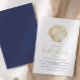 Invitation Gold Seashell Navy Blue Beach Fête des mariées