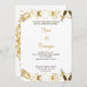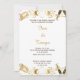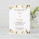 Wedding invitation, floral invite thank you. Label card floral design. Golden pattern of forest leaves, palm, fern fronds, eucalyptus branches. elegant template