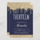 Gold and Navy, Blue White Sparkly Dripping Parties scintillant Girl devient un ado 13ème Treizième (Treize) Invitation fête d'anniversaire. C'est le parfait enfant 13ème - 13ème anniversaire de treize filles Invitation pour une Parties scintillant moderne étincelante Fille étincelante fête d'anniversaire. Veuillez contacter le concepteur pour les articles customisés correspondants.