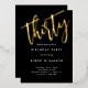 invitation d'anniversaire simple et élégante, écrite avec des lettres d'or. Parfait pour les trente ans masculins