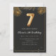 Luxury Golden Tropical Palm Feuille 7e anniversaire de fête Invitation. Adorable 7ème anniversaire invitation dans un design de ballons noir et or avec des feuilles de palmiers tropicaux dorés. Customisez avec les détails de votre fête et envoyez un courriel à la famille et aux amis les invitant à célébrer le 7e anniversaire avec style!