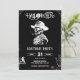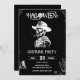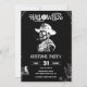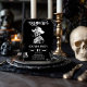 Illustration d'Halloween gothique foncé avec un buste squelette portant un casquette cowboy et fumant une cigarette, encadrée de corbeaux blancs et une main squelettique sur un arrière - plan noir. Un design éffrayant, élégant et unique au charme gothique occidental.
