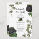 Un design gothique mariage de scénario Halloween avec des roses noirs et des vignes pendantes. Un design d'Halloween blanc qui utilise des fleurs botaniques noires et foncées avec des typographies de calligraphie vintages. Un design gothique élégant idéal pour les thèmes mariages d'Halloween. Un design rose noir unique. Des articles de papeterie mariage correspondants et d'autres formats d'invitation de mariage sont également disponibles.