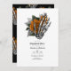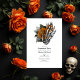 Invitations invités à une soirée de fiançailles inoubliable avec cette invitation d'inspiration gothique avec une main squelette tenant des roses oranges vibrants. Le design audacieux et unique allie harmonieusement romantisme et esthétique sombre, idéal pour les couples qui souhaitent faire une déclaration. Parfait pour les fêtes à thème d'Halloween, gothiques ou de style alternatif, cette invitation donne le ton d'un événement mémorable.