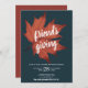 Des amis qui donnent ! Une invitation à l'action de grâces à la main rustique peinte à la main en feuille d'érable brun rouge sur le bleu éditable.