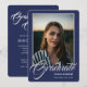 Graduate Modern Photo Blue Graduation Party Invitation présente un design moderne et élégant de graduation avec une photo et un nom personnalisés avec l'école, le collège ou l'université et l'année sur le front. Au verso sont les détails de l'Invitation de la Partie de Graduation. Personnalisé en modifiant le texte dans les zones de texte fournies.