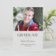 Ce carte photo moderne de graduation présente une typographie simple et une grande photo. Une photo horizontale du diplômé est en haut, avec le mot "Graduate" écrit dans la capitale branchée en bas. Sous la typographie, ajoutez le nom du diplômé en calligraphie script, avec l'école et l'année de diplôme au bas de la carte. La typographie est gris charbon contre un arrière - plan gris clair. Le verso de la carte de graduation comprend un modèle optionnel pour ajouter les détails de la fête de graduation.