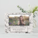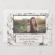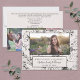 Cette carte de graduation moderne botanique et noire présente une typographie manuscrite branchée dans une zone de texte, une photo panoramique du diplômé, et un motif floral botanique dessiné à la main, avec 3 autres photos senior, faire-part personnelle et invitation à la fête à l'envers. Copyright Anastasia Designs, tous droits réservés.