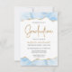 Cette invitation branchée à la remise des diplômes comporte une bordure supérieure et inférieure de géode d'aquarelle dans les tons bleu pastel avec des reflets de parties scintillant en faux or. Le mot "Graduation" apparaît dans la parties scintillant en faux or dans la police décorative moderne d'écriture manuscrite. Customisez l'invitation avec le nom du diplômé en texte couleur or et les détails du parti en gris fusain sur un arrière - plan blanc. Remplacez facilement l'image de l'échantillon au dos par une photo verticale du diplômé.