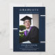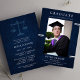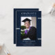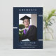 Avec un design élégant bleu marine, cette invitation vous permet de personnaliser votre faire-part avec un instantané mémorable. Versatile dans son but, cette invitation sert à la fois de faire-part de remise de diplômes et d'invitation, ce qui en fait un lieu idéal pour partager votre succès avec vos amis et votre famille dans le style. Faites de votre cérémonie de remise des diplômes une expérience unique grâce à notre invitation moderne à obtenir un diplôme en bleu marine.
