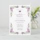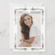 Invitation de Graduation Florale Violet. Célébrez votre réussite avec style grâce à cette élégante invitation à la remise des diplômes, idéale pour les personnes âgées du secondaire et les diplômés du collège. Avec un cadre rectangulaire magnifiquement conçu, cette invitation est ornée de magnifiques flores d'aquarelle peintes à la main dans la lavande douce, rose rousse, bordeaux foncé et violet vif. De délicieuses fleurs sauvages, roses et une verdure élégante apportent une touche raffinée, tandis qu'une mignonne casquette violette apporte un élément ludique mais sophistiqué au design. Un script de calligraphie élégant améliore l'aspect intemporel, le rendant parfait pour les fêtes du printemps et de l'été. L'arrière dispose d'un motif de coordination et de l'espace pour une seule photo chère, vous permettant de personnaliser votre invitation et en faire un faire-part digne de votre journée spéciale.